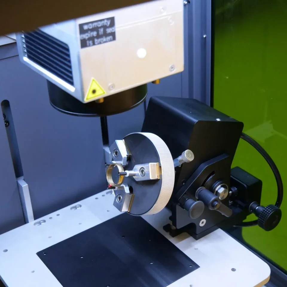 Con una amplia gama de opciones y accesorios, esta estación de marcado láser se puede configurar según sus necesidades y artículos específicos. Por ejemplo: anillos grabados por dentro y por fuera, de pulseras en metales preciosos, personalización de frascos de perfume, vasos, maquillaje, cubierto, ¡y muchas otras posibilidades!